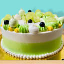 Torta de limón, elaborada con keke de limón y arándanos, relleno con frosting de limón, decorada con crema chantilly y arándanos. Aprox 18 porciones.