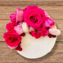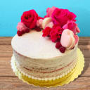 Torta red velvet, decorado con rosas, macarrones y frambuesas.